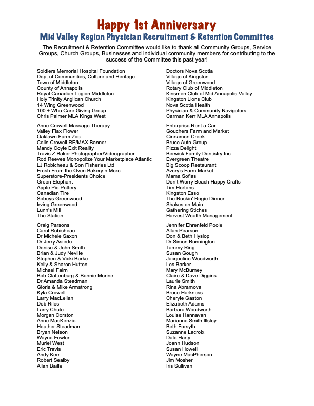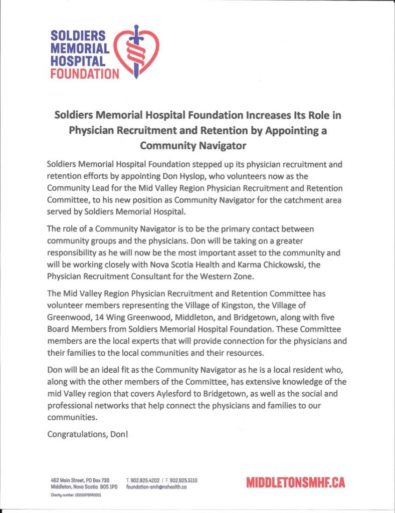 The Mid Valley Region Physician Recruitment & Retention Committee was formed in April 2021. Five of the Committee members are also members of the Board of Directors of Soldiers Memorial Hospital Foundation. As the Committee’s name suggests, its goal is to recruit physicians and other health care professionals to our area. But, more than that, there is a need to help these new medical professionals become familiar with the area, assist them with finding housing, completing government forms and registrations, etc.
